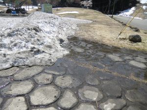 白山一里野温泉スキー場スタッフブログ 快晴の一里野です。 2018.04.21 今日も一里野は快晴となっています。 11:00過ぎの時点で、山麓の気温が、なんと26℃を超えています(@ ̄□ ̄@;)!! 外を歩くと暑いはずですね。 皆さんも水分補給をしっかりして体調管理には気を付けてくださいね。 センターハウスのテラスにかわいいお花が届きました。 これは地元の尾口公民館さんから毎年、分けていただいているもので、本当に感謝ですね。 グリーンシーズンのセンターハウスの建物周りが割と殺風景なので、かわいいお花がありがたいです。 レストラン、BBQ広場の営業開始の28日までには設置する場所もきちんとしなきゃですね。 一里野公園をのぞいてみると、公園の雪もかなり消えています。 足元を見ると、気温が体ことも有って、すごい勢いで雪が融けて水が流れていました。 ゴールデンウィークに向けて一里野も新緑の季節に移り変わっていきます。 この週末も自然いっぱいの白山ろく方面へドライブの足を延ばしてみては。