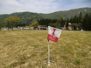 一里野公園の天領前に8ホール分、ホールポストを設置しました。