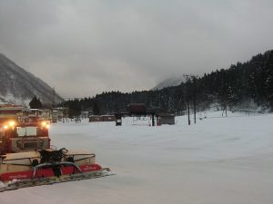 圧雪隊が雪が少ないなか、ゲレンデを仕上げてくれています。
