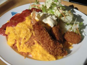 白山一里野温泉スキー場スタッフブログ 新メニュー!金沢名物「ハントンライス」 2019.02.01 今日のランチはレストランあいあ~るで。 今シーズンの新メニューのひとつ、金沢名物「ハントンライス」を頂きました。 ケチャップライスの上にふわふわタマゴ。 白身魚のフライ×2、エビフライ×1がオン!ボリューム満点で美味し( ̄▽ ̄) サラダもついているので女性にもうれしいですね(●^o^●) ぜひ一度、今シーズンのゲレ食にお試しください!