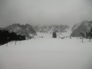 降り出しも朝方からで、圧雪バーンの上に白く雪化粧された感じですね。
