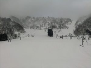 圧雪バーンの上にフワフワ新雪で白くうっすらですね。