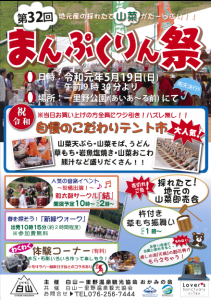 白山一里野温泉スキー場スタッフブログ 日曜日は『まんぷくりん祭り』。天領割引券ももらえるよ! 2019.05.14 今日はあいにくの雨となっている天領です。 しばらく晴天が続いたので、周辺の木々や草花には恵みの雨かも知れませんね。 今日のような天気の日は、内湯にのんびり浸かって、お休み処でまったり過ごすのもいいですよ。 こんどの19日の日曜日は、一里野温泉スキー場センターハウスあいあ~る周辺を会場に『まんぷくりん祭り』が開催されます。 毎年人気の山菜即売会や太鼓演奏などがありますが、会場でお買い物すると天領の割引券がもらえちゃいます! お祭りを楽しんだ後は、天領の天然温泉でこころも体もリフレッシュしましょう。 まだまだ「祝・令和」記念キャンペーン実施中! くわしくはこちら http://ai1423xu6f.smartrelease.jp/wp/information/p16278/ 新緑の季節も白山癒しの湯天領 http://ai1423xu6f.smartrelease.jp/wp/tenryou/