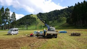 白山一里野温泉スキー場スタッフブログ 冬の準備もすすめてます! 2019.09.06 この冬のシーズンに向けて新リフトだけでなく、いろいろな整備を行っています。 ゴンドラ線下付近を一部削る作業も、少しでも滑りやすくという事ですね。 テクニカルスタッフは、「ふれあいゲレンデ」に新たに設置されるムービングベルトの取り付け作業を始めています。 このムービングベルトは初級者向けに、傾斜の緩やかな「ふれあいゲレンデ」でスキー、スノーボードにチャレンジしてもらえるように設置されます。 今シーズンは基本的に土、日、祝日の運行予定ですが、たくさんの皆さんにスキー、スノーボードをチャレンジしてほしいですね! 新リフトの工事現場方向を見ると、見るからにレトロな重機が! 今回の工事にまだまだ現役のクレーンは、聞くところによると日本に1台あるか2台あるかのレアものとの事。 ただ、稼働させるにはコツがいるようです💦 冬のホワイトシーズンまで、しっかりと準備していきますよ!!
