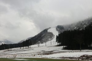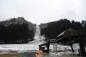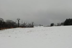 一里野で中腹となる「のだいらゲレンデ」まで上がってみましたが、深いところでも約10cmほど。