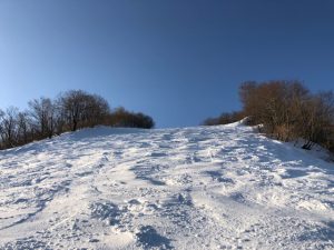 白山一里野温泉スキー場スタッフブログ パトロール隊より、上級者エキサイトゲレンデ 2020.02.21 パトロール隊より、上級者コースのエキサイトゲレンデ上部の今朝の様子です。 今朝は全体的にハードバーンとなっています! しっかりスピードコントロールしてください。 エキサイトゲレンデ下部は日中にバーンが緩むまでクローズ。 パトロール隊が安全確認し判断となります。 雪が少ないので、滑走には十分お気を付けください。