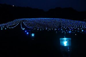 夕暮れ時の爽やかな高原でイルミネーションの灯りに癒されてください。