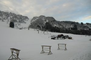 今朝は曇り空ですが、うっすらと青空も見える一里野です。