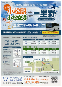 事前予約が必要になりますが、今シーズンより小松空港からのシャトルバスが、JR小松駅からの乗降も可能になりました!