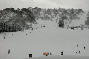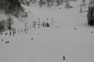 今朝の一里野は小雪がちらちらと降ったりやんだりです。