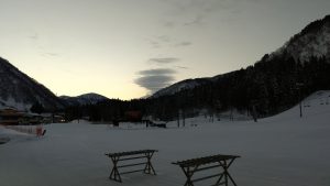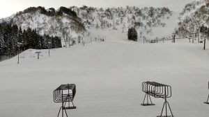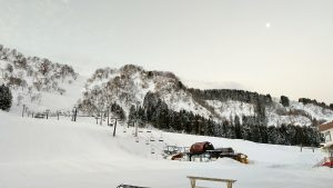 朝イチは固めのバーンとなりますので、バーンが緩むまではスピードコントロールに十分お気を付けください。