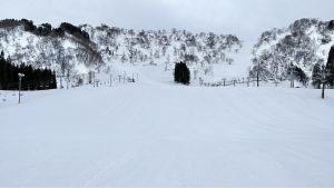 ゲレンデはバーンが固めなので、緩んでくるまではしっかりスピードコントロールに注意して滑走をお楽しみください。