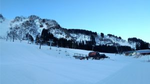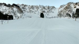 気温が上がって緩んでくるまでは固めのバーンとなるので、スピードコントロールに気を付けて滑走を楽しんでください。