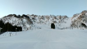朝イチはカリッと固めのバーンとなので、バーンが緩むまでは特にスピードコントロールに十分気を付けて安全に滑走を楽しんでください。
