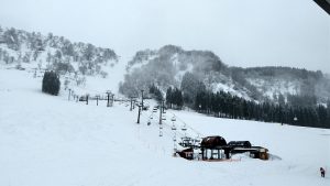 しっかりと積もるような雪ではないですが、ゲレンデを白くしてくれました。