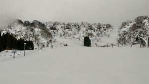 朝イチは固めのバーン、滑走はスピードの出しすぎに気を付けて安全に楽しんでください。