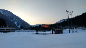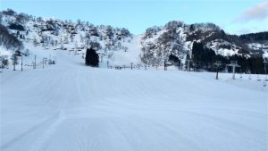 ゲレンデは朝イチ固めのバーン、緩んでくるまではスピードコントロールに気を付けて滑走を楽しんでください。