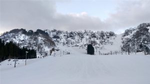 今朝の一里野は晴れ!今日もまだまだ楽しいSnow Lifeを楽しめますよ。