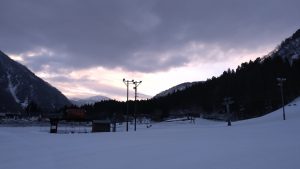 雪質はザラメ、しっかり圧雪されたバーンをスピードコントロールに気を付けて安全にお楽しみください。