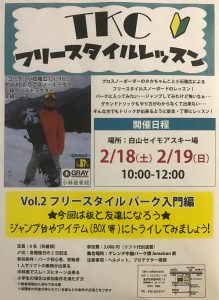 プロスノーボーダーによるフリースタイルのレッスンが行われます!
